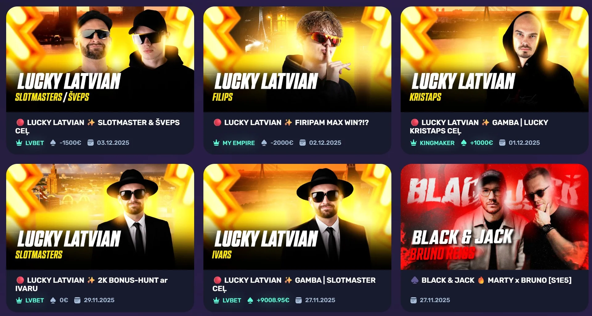 Vai palaidi garām tiešraidi? Neuztraucies! Mūsu tiešraides atkārtojumi vienmēr būs pieejami "Tiešraides" sadaļā, kā arī tagad, Tu vari sekot līdzi Lucky Latvian statistikai, detalizēti redzēt lielākos pacēlienus un lielākās zaudes. Atgriezies atpakaļ laikā un sajūti episkas emocijas kopā ar Lucky Latvian un viesiem!